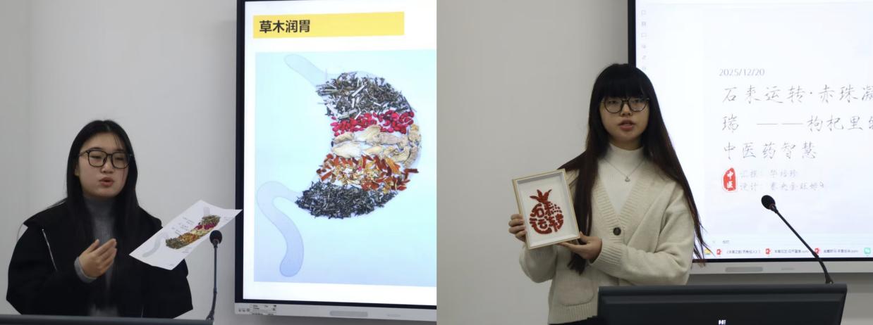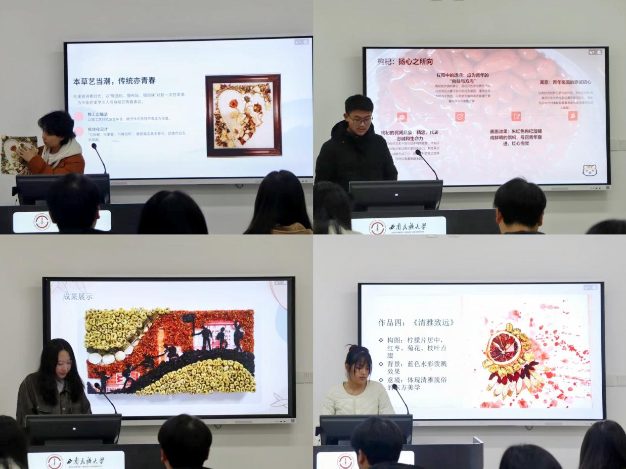 据悉,大赛以“传统药材手工艺与现代创意融合”为核心,旨在通过实践创新激活中医药文化的时代生命力。经过初赛激烈角逐,10名选手携匠心之作晋级决赛。决赛现场,选手们通过PPT展示,生动阐释作品的设计理念、制作工艺及药材的药用价值,将中医药的“天人合一”智慧与现代审美巧妙融合,展现出青年学子对中华医药文化的深刻理解与创新传承。评委老师从作品的文化内涵、工艺水准、创意表达等维度综合评审,最终评选出一等奖1名、二等奖2名、三等奖3名及优秀奖4名。